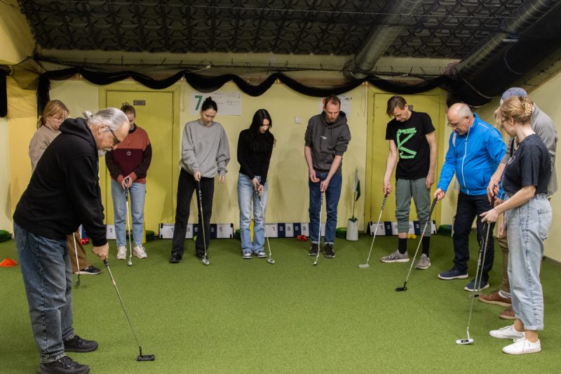 Šį kartą teatralai galėjo išbandyti golfą – sportą, kuris reikalauja ne didelio fizinio pasirengimo, bet didelės psichologinės koncentracijos. Pažintinis užsiėmimas su šiuo sportu įvyko golfui skirtoje auditorijoje.
