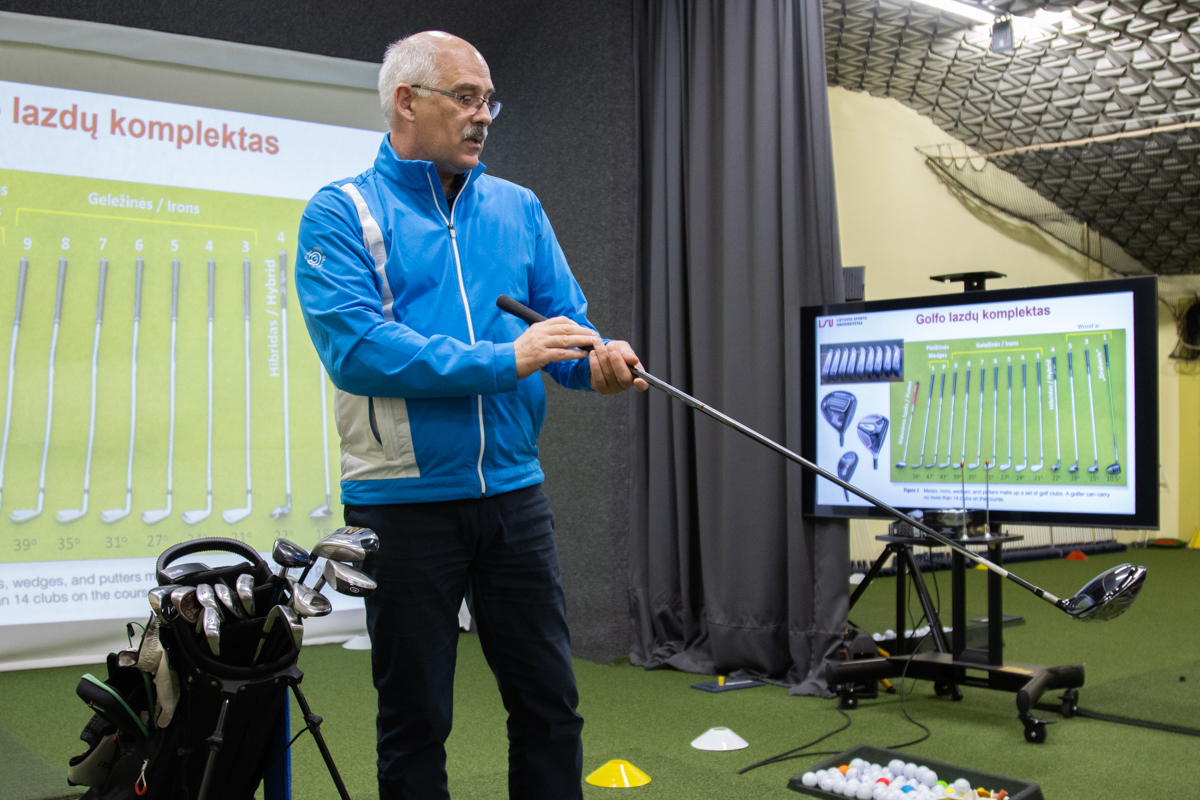 Su golfo technika, inventoriumi, istorija, taisyklėmis bei tradicijomis Lietuvoje supažindino LSU dėstytojas, golfo treneris ir teisėjas doc. dr. Gediminas Mamkus.